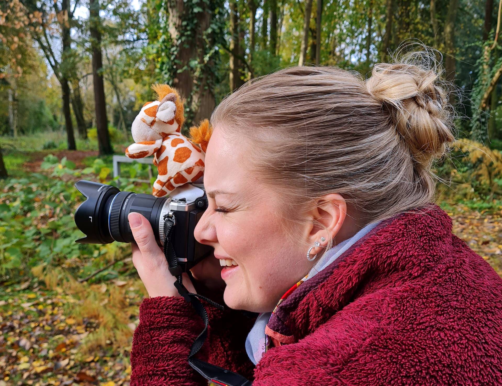 Voor het fotograferen van de kleintjes van baby tot ongeveer 8 jaar tover ik mijn girafje uit mijn tas die bovenop de camera zit. Dat kijkt voor kinderen een stuk prettiger, aangezien een grote zwarte camera best wel eng en spannend kan zijn.